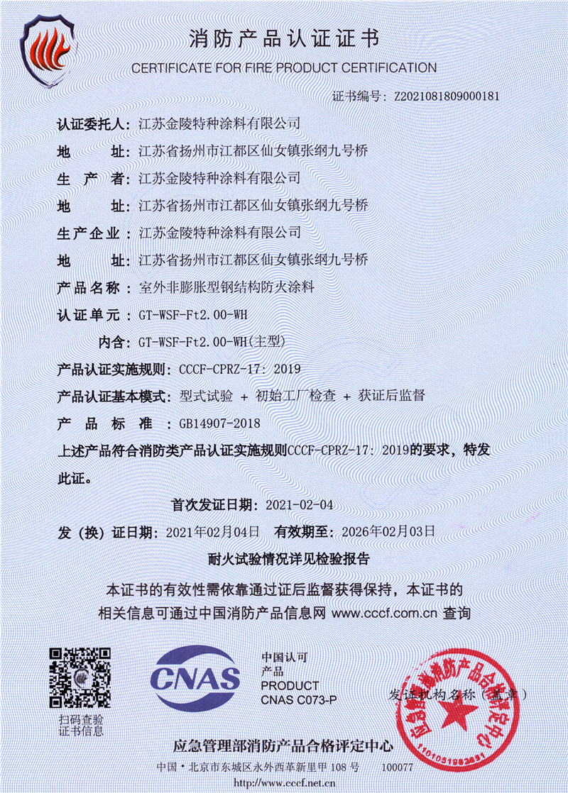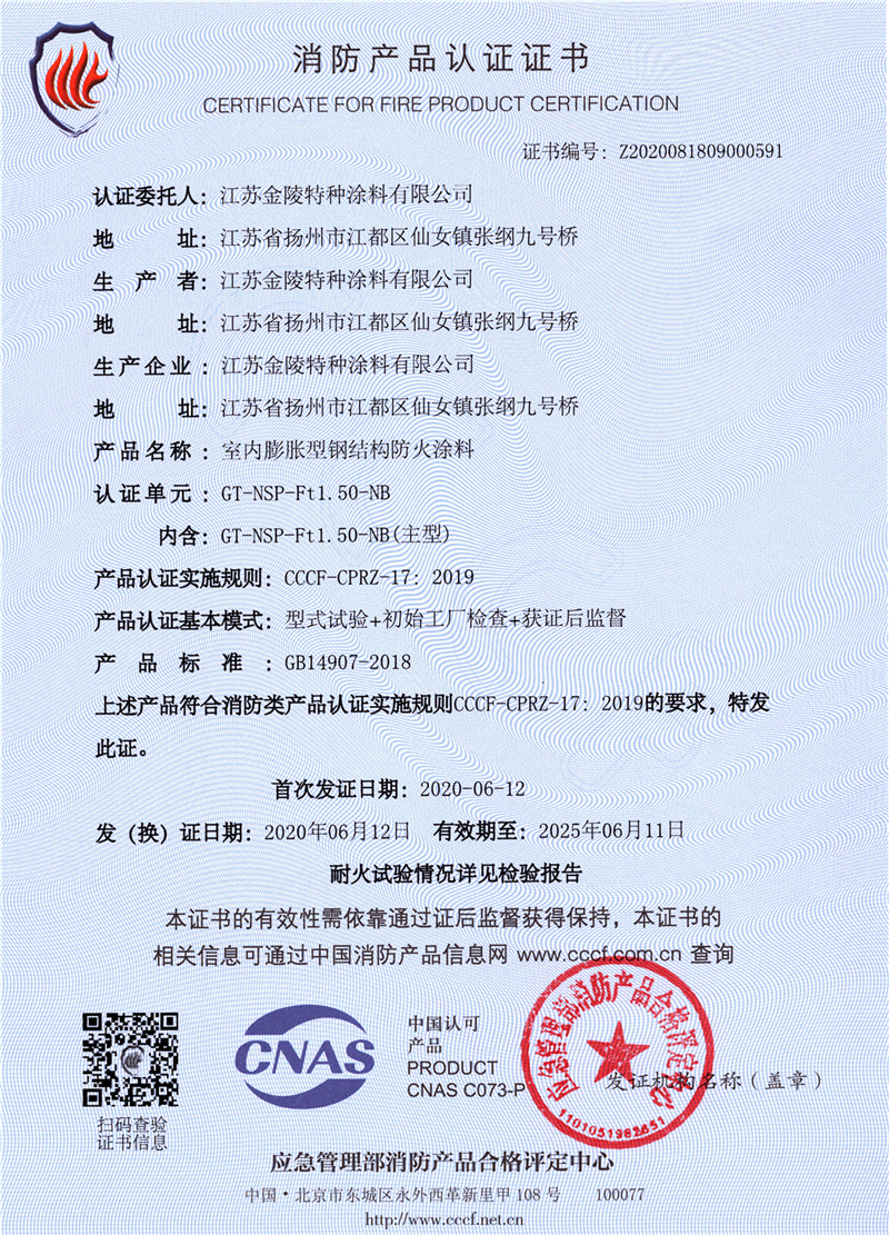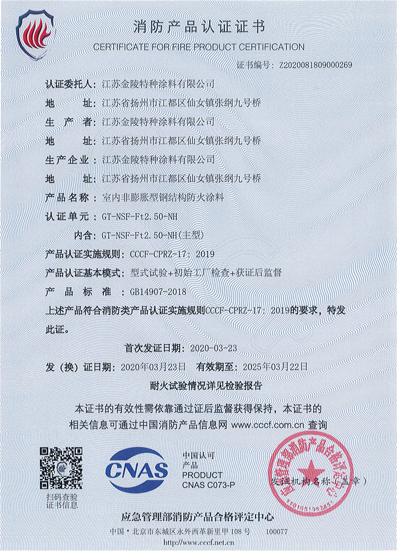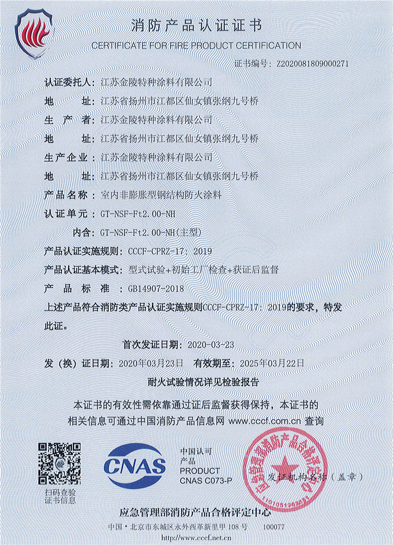 金陵非膨脹型防火涂料利用涂層固有的良好絕熱性,阻止火災(zāi)熱量向鋼材傳遞,并且在高溫下形成一種結(jié)構(gòu)致密的釉狀物,能有效隔絕氧氣并具有反射熱量作用,延緩鋼結(jié)構(gòu)溫升,起到防火保護(hù)作用。